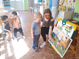 Учимся с детьми называть , показывать разных по величине медведей , правильно группировать предметы по величине.Формируем умение правильно называть части игрушки, отвечать на вопросы, показывать большого и маленького мишку, кому что подходит по размеру. Формировать умение отвечать на вопросы, учить детей внимательно слушать воспитателя , повторять движения .Продолжаем с детьми изучать цвета , правильно называть и показывать , раскрась большого мишку синим цветом, маленького красным.